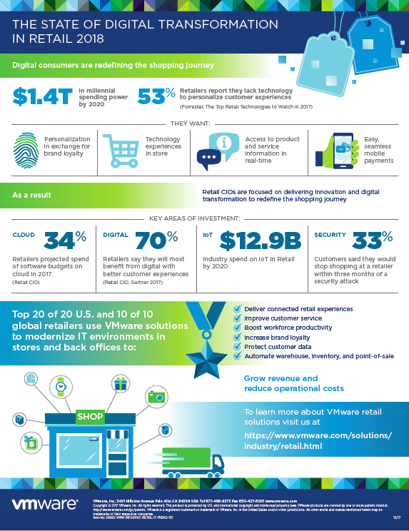 Strong holiday retail sales are shaping up to look very promising for retailers heading into 2018. According to the National Retail Federation, retail sales during November and December grew 5.5% year over year to about $692 billion. The industry is revving up for a great year as consumer spending continues to rise and retailers deliver The post The State of Digital Transformation in Retail 2018 appeared first on VMware Industry Solutions .