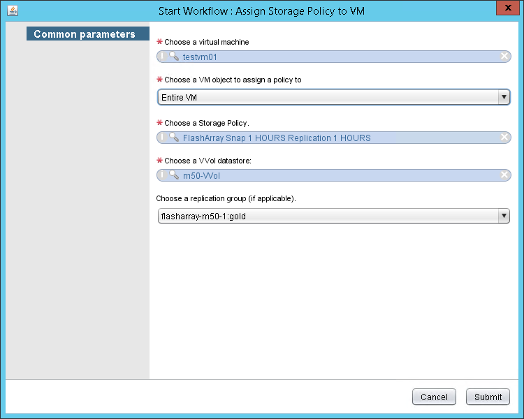 Assigning a VVol VM Storage Policy with vRO