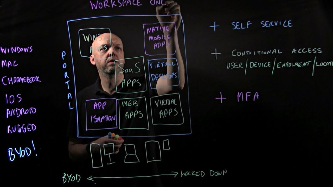VMware EUC Specialist Darren Hirons explains how organizations overcome the challenges of modern enterprise IT using the integrated VMware Workspace ONE digital workspace platform. Read more: VMware End-User Computing (EUC) solutions empower the digital workspace by simplifying app & access management, unifying endpoint management & transforming Windows delivery. Follow the VMware EUC Blog to learn more: https://blogs.vmware.com/euc.
