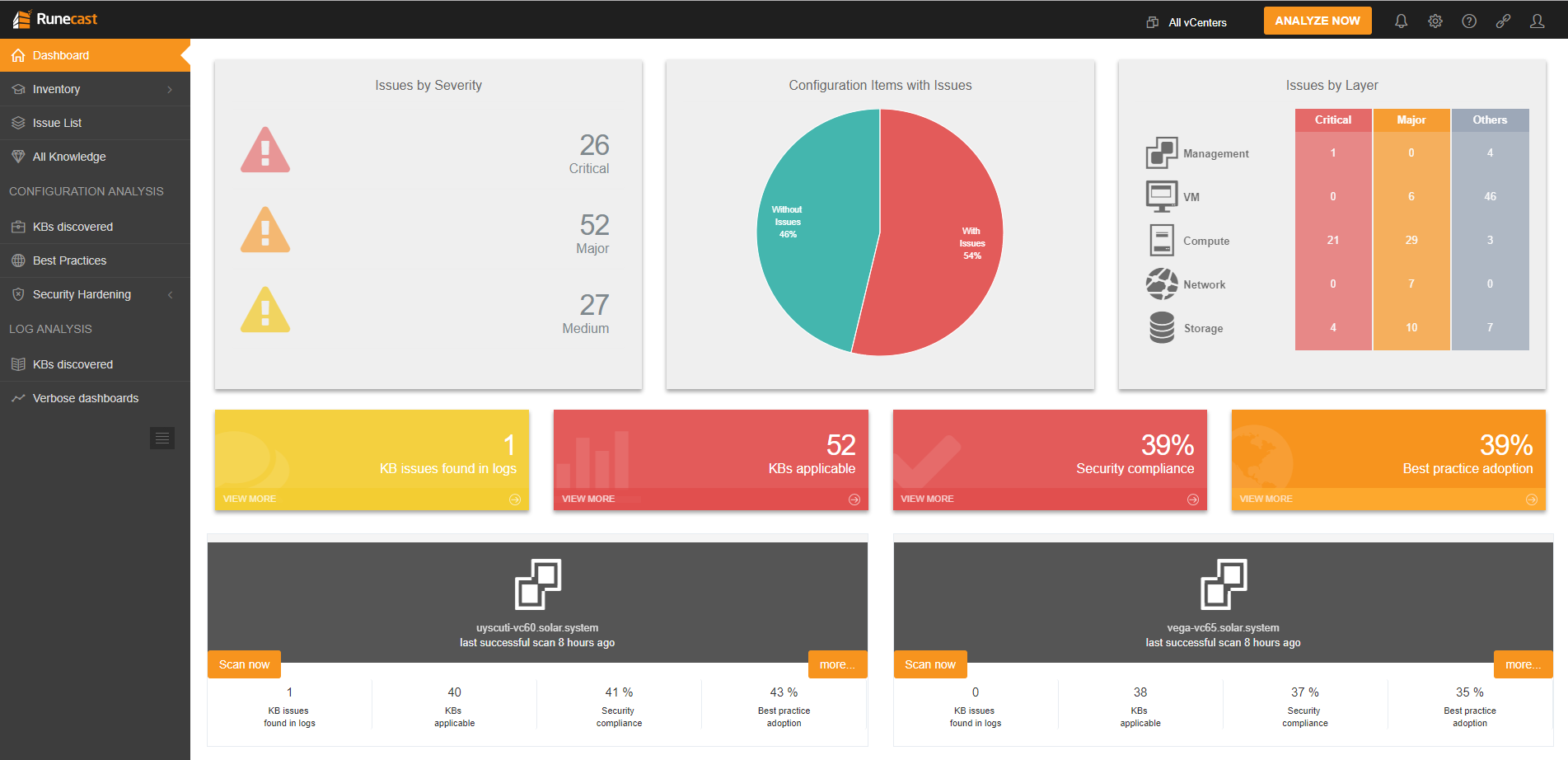 Released: Runecast Analyzer 1.7 with vSAN SupportReleased: Runecast Analyzer 1.7 with vSAN SupportRunecast has released version 1.7 of their Analyzer today and it has added support for VMware vSAN. By using a number of resources within VMware’s knowledge base Runecast offers a platform that looks at best practices, log information and security hardening guides to... Continue Reading →