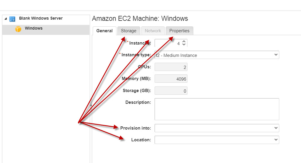We are trying to set defaults for the AWS instance Blueprint deployment. Is there any way to hide items such as the provision into, location and setting defaults.