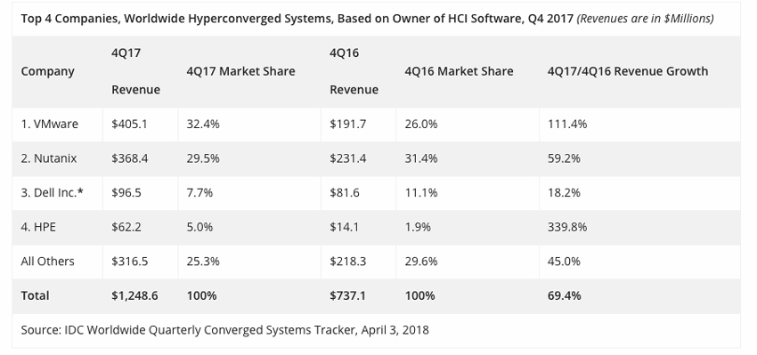 IDC Converged Systems Revenue Report for 4Q17; Dell EMC & VMware Leaders | StorageReview.com