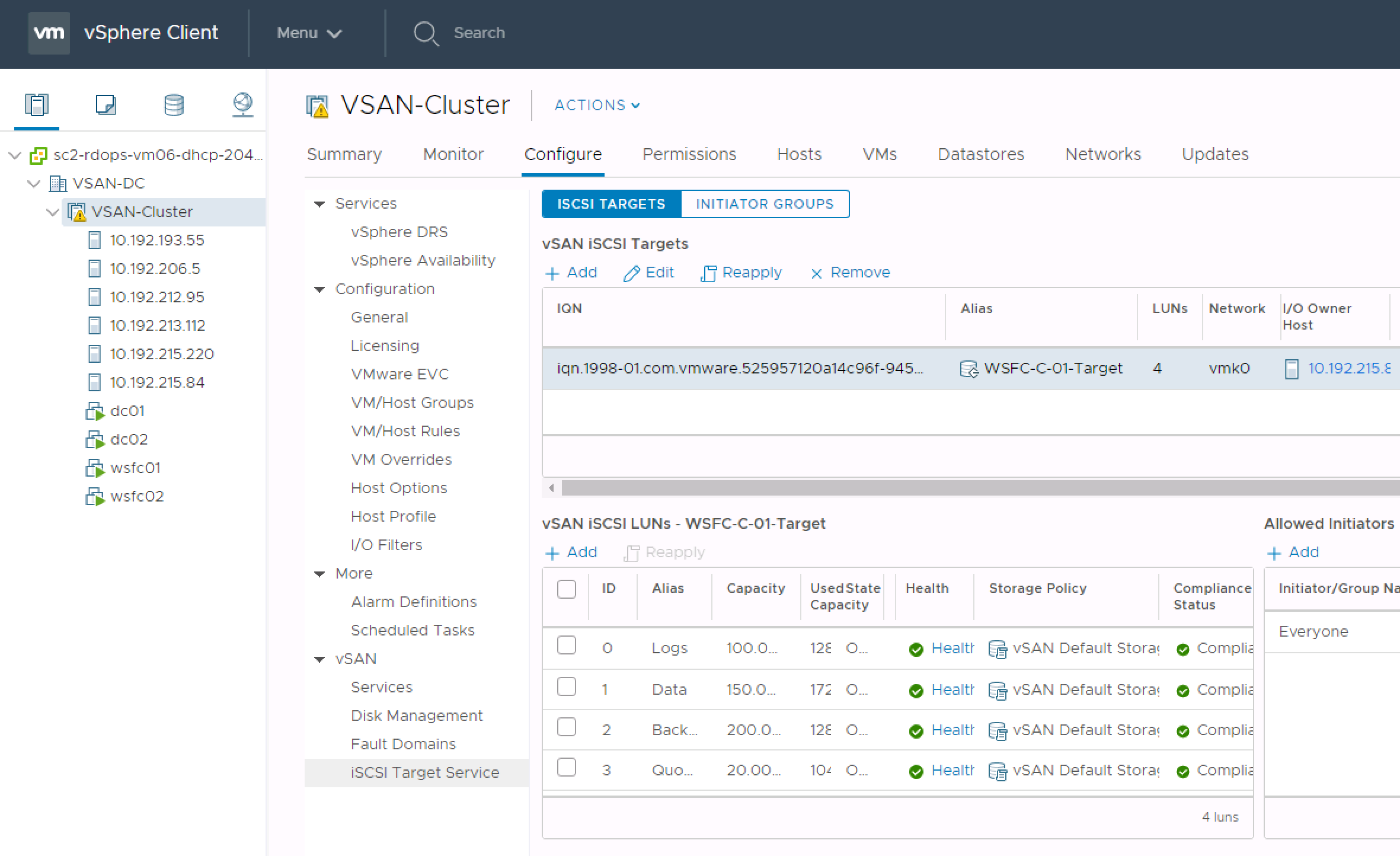Introduction In vSAN 6.5 we introduced the concept of iSCSI targets hosted on a vSAN cluster. This allowed connection of physical hosts to a vSAN datastore to take advantage of SPBM and other vSAN features such as deduplication, compression, encryption and QoS for physical machines external to a virtualized cluster. This extended vSAN’s capabilities from The post vSAN 6.7 – Introducing WSFC support on vSAN! appeared first on Virtual Blocks .