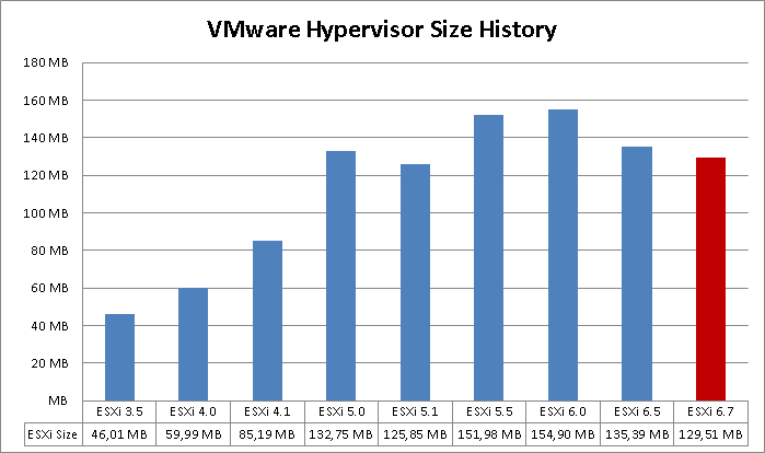 VMware ESXi 3.5 – 6.7 Hypervisor Size Comparison
