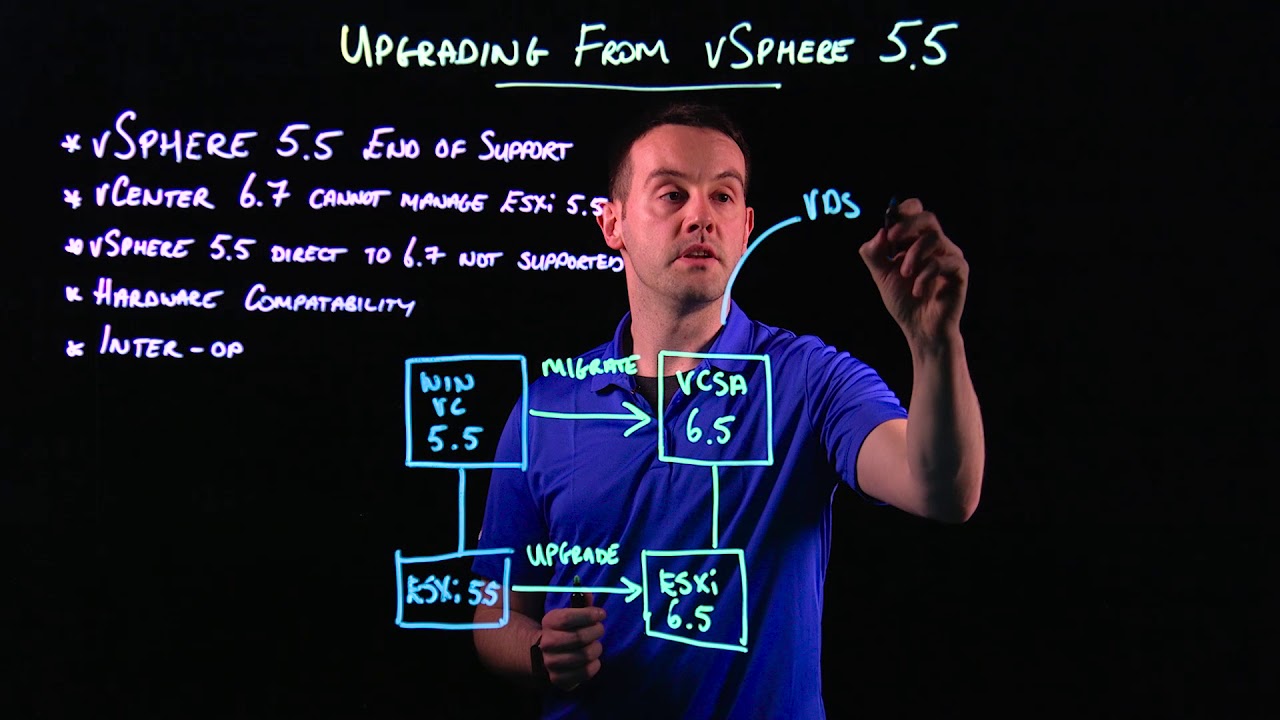 Lightboard illustration of the upgrade process from vSphere 5.5 to vSphere 6.7 Learn more at http://www.vmware.com/education