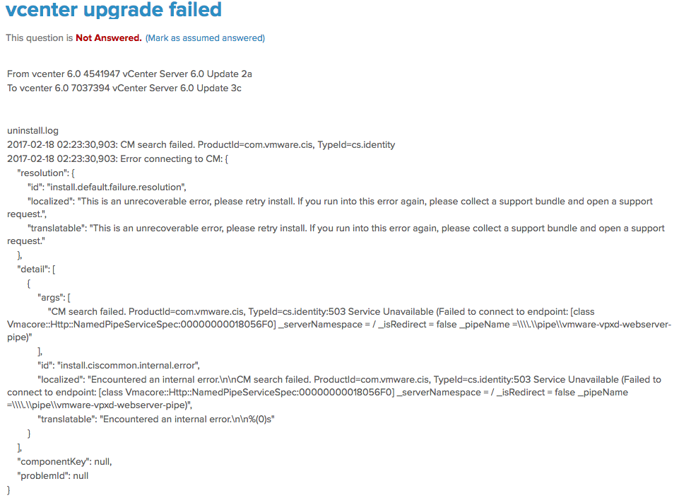vCenter Upgrade Failed – Join the conversation in vCenter on #VMTN