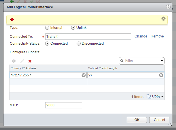 Blank Error While Adding NSX DLR or ESG Interfaces