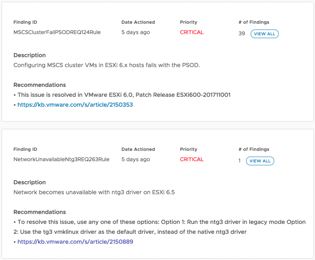 As part of our goal to continuously improve the customer support experience, Technical Support Engineers (TSEs) can now interactively view the proactive findings and recommendations delivered to customers today within the Skyline Operational Summary Report (OSR). Additionally, within the findings and recommendations, TSEs can view customer environment inventory information along with all Support Requests (SRs) […] The post Proactively Identifying Potential Risk with VMware Skyline appeared…Read More