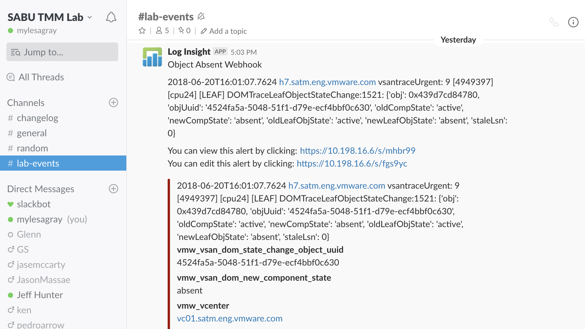 Using webhooks and vRLI to integrate vSAN alerts with Slack