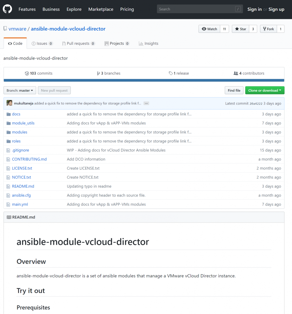 Ansible Modules for vCloud Director are now available on GitHub. VMware vCloud Director provides different ways to configure and consume services offered by a cloud provider. While the web-based user interface and the available command line interface are targeted for human usage, there is a rising demand of automating such tasks. The REST API of The post Ansible Modules for vCloud Director Released appeared first on VMware Cloud Provider Blog .