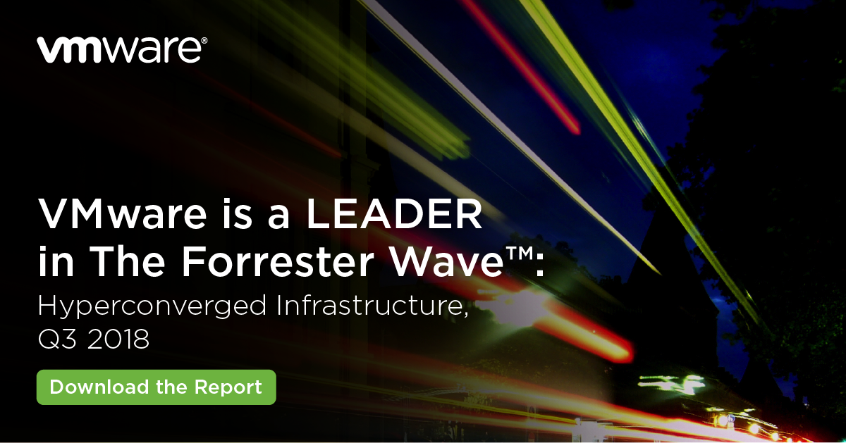 Forrester has positioned VMware as a Leader in The Forrester Wave™: Hyperconverged Infrastructure, Q3 2018, and VMware received the highest score in the strategy category. We believe this report validates VMware’s ability to not only envision what’s next, but to rapidly deliver benefits that solve c
