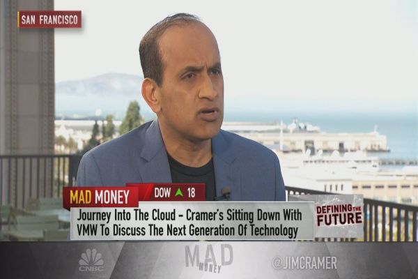 Jim Cramer sits down with VMware Chief Operating Officer Sanjay Poonen to discuss the company’s pivot to the public cloud and its partnership with Amazon Web Services.