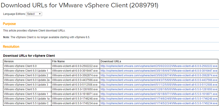 Download URLs for VMware vSphere ClientAs the Microsoft Windows VMware vSphere Client is not part of the installations anymore starting VMware vSphere 6.5, you might ask yourself where to get that ins