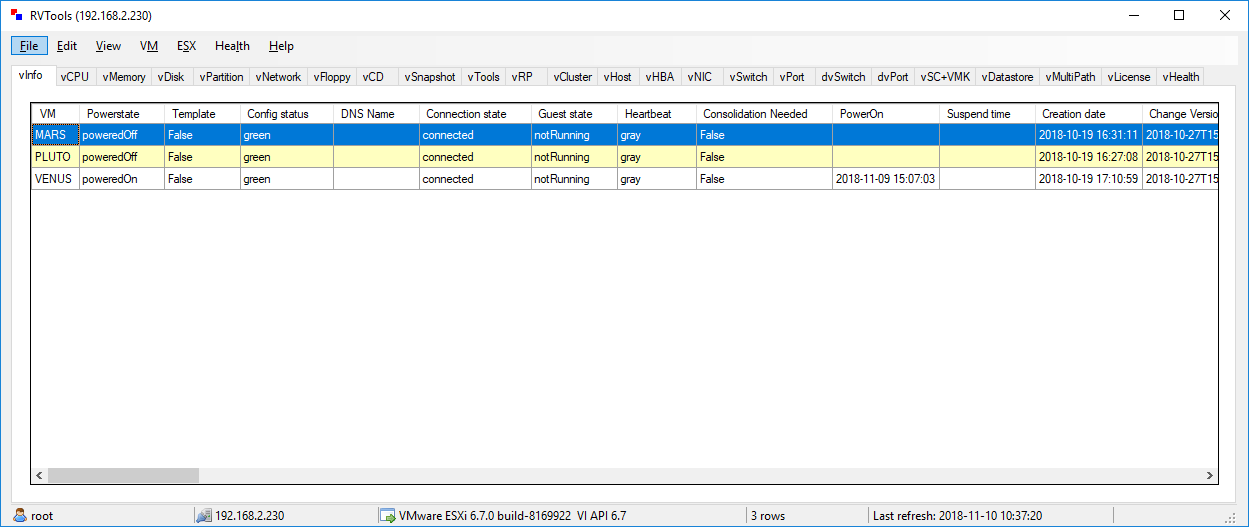 RVTools is able to list information about VMs, CPU, Memory, Disks, Partitions, Network, Floppy drives, CD drives, Snapshots, VMware tools, Resource pools, Clusters, ESX hosts, HBAs, Nics, Switches, Ports, Distributed Switches, Distributed Ports, Service consoles, VM Kernels, Datastores, multipath…Read More