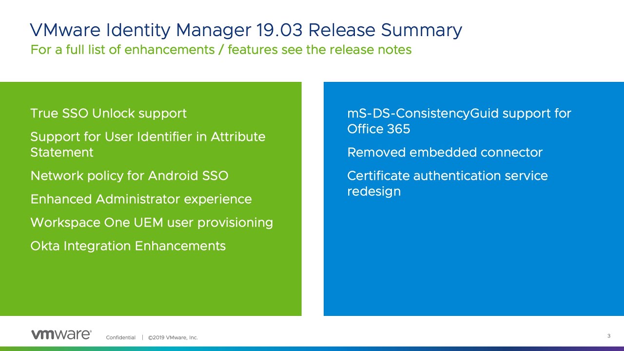 In this video, we’ll highlight some of the enhancements and new features in VMware Identity Manager version 19.03