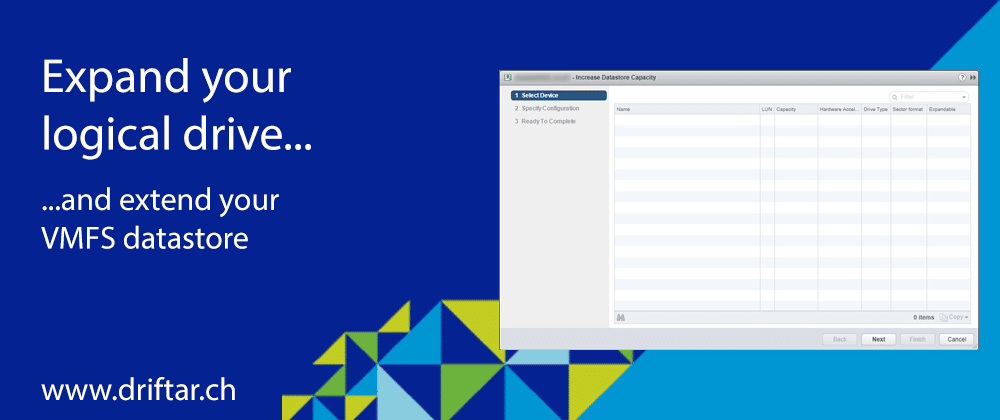 Recently, I had to add some hardware to an HPE ProLiant DL380 server. My task was to add the newly installed disks to the existing ESXi datastore. After the server was up and running again, I tried to increase the VMFS datastore capacity. It didn’t work as expected.