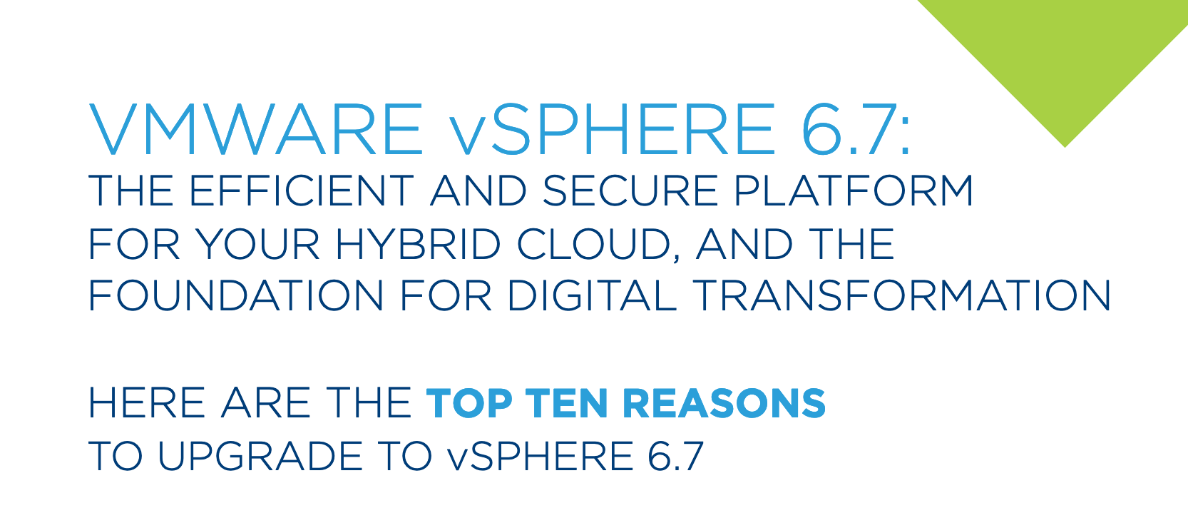 See the top 10 reasons to upgrade to vSPHERE 6.7 in this infographic.