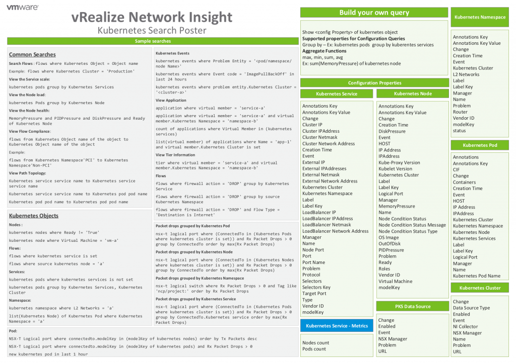 Continuing our Search Poster series, we’ve arrived at the Kubernetes Search Poster! Using the search engine inside VMware vRealize Network Insight can be a revealing experience. It has every single bit of data you ever wanted to see about anything in your infrastructure and it’s available at your fingertips. Because of the vast amount of The post vRealize Network Insight Search Poster for Kubernetes appeared first on VMware Cloud Management.