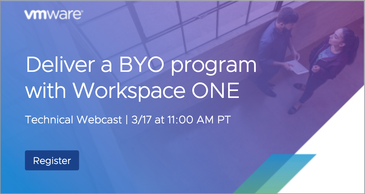 Are you using all the features Workspace ONE has to offer? Join Sr. Product Marketing Manager Kelly Masters on 3/17 for an in-depth look at WorkspaceONE Assist, Intelligent Hub, and Mobile Flows.