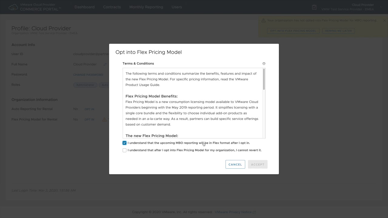 VMware Commerce Portal – Sign Up for Flex Pricing Model