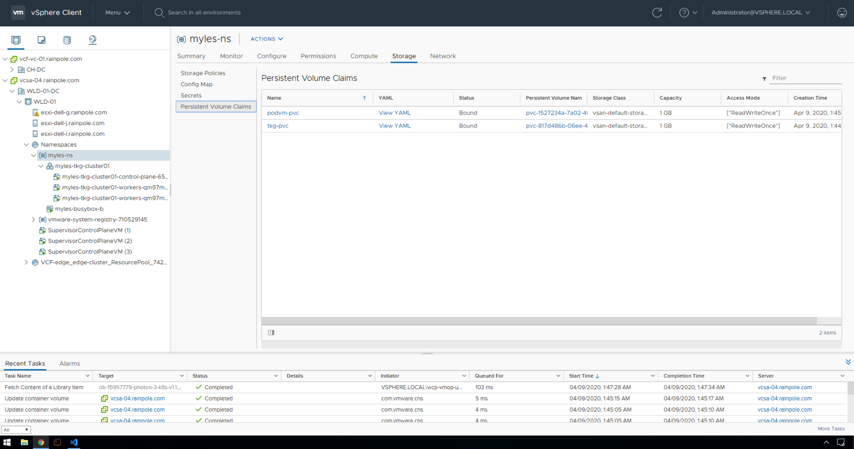 Cloud Native Storage integration for vSphere with Kubernetes