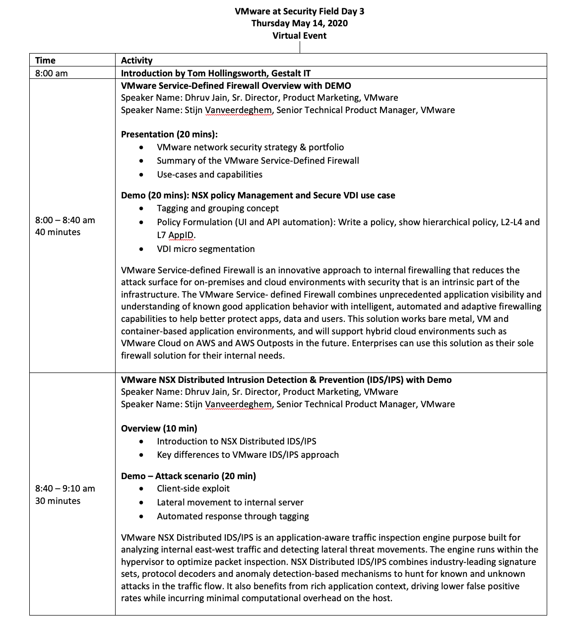 Hi folks, The Gestalt IT team is back with another exciting set of Field Day presentations. Multiple IT product vendors, including VMware, and independent thought leaders will share information and opinions in a presentation and discussion format. The complete VMware agenda and speaker […]