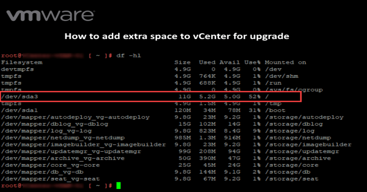 How to add extra space to vCenter for the upgrade