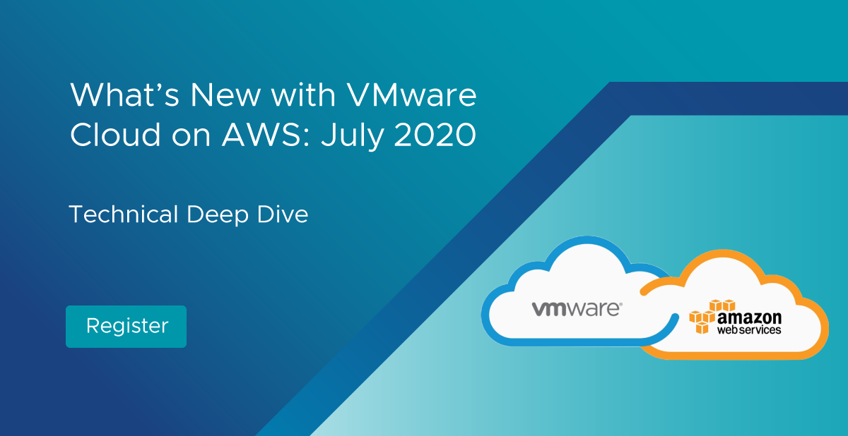 See the New Features in VMware Cloud on AWS on 7/23See the New Features in VMware Cloud on AWS on...In this intermediate technical session, we’ll show you a quick overview of new features in VMware Cloud on AWS, new capabilities in the service & supported solutions, and value and benefits these new features bring to... Continue Reading →