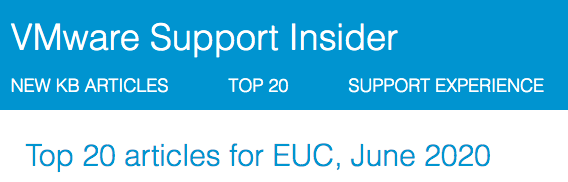 Top 20 articles for EUC, June 2020Top 20 articles for EUC, June 2020Supported versions of Windows 10 on Horizon Agent Including All VDI Clones (Full Clones, Instant Clones, and Linked Clones on Horizon 7) VMware Horizon ports and network connectivity requirements Black screen when logging in to a Horizon virtual desktop over PCOIP Troubleshooting SSL... Continue Reading →