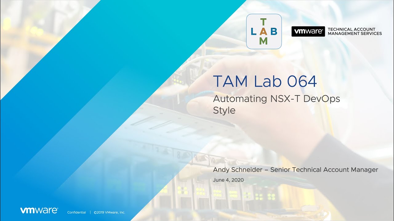 TAM Lab 064 - Automating NSX-T DevOps StyleTAM Lab 064 - Automating NSX-T DevOps StyleTerraform is a multi-cloud Infrastructure-as-Code (IaC) solution that is growing in popularity for maintaining infrastructure in a declarative nature. Andy Schneider (@andyjsch) reviews his lab environment, where he is maintaining security policy in NSX-T across multiple sites using Terraform, [...]VMware Social... Continue Reading →