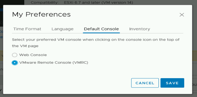 Set the default console in vCenter