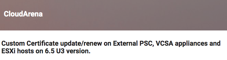 Custom Certificate update/renew on External PSC, VCSA appliances and ESXi hosts...Custom Certificate update/renew on External...Hello Everyone, This post is about how to update/renew custom certificates on External PSC, vCenter appliance and ESXi hosts. So, i am writing this post so that you can easily understand how to update the custom certificates in a distributed environment.... Continue Reading →
