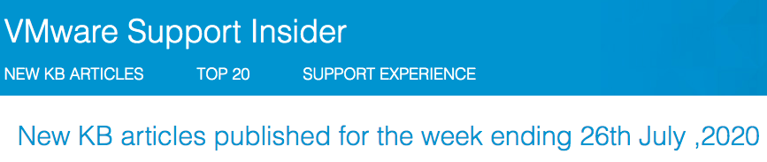 Check out the new KB articles published for the week ending 26th July, 2020 – from VMware Support Insider.