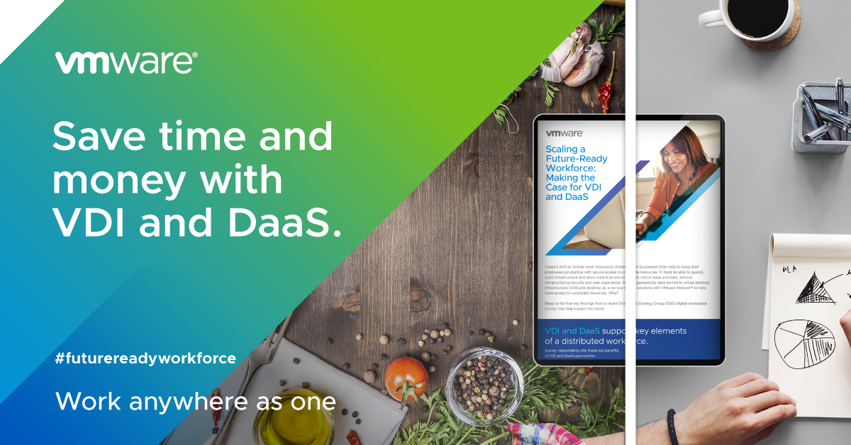 Hybrid VDI and DaaS Powered by Horizon 8 + Horizon Control PlaneHybrid VDI and DaaS Powered by Horizon 8 +...Learn how the latest release of VMware Horizon 8, paired with the Horizon Control Plane, allows you to leverage hybrid and multi-cloud deployment options to simplify management and improve productivity. 9/8 at 11am PT.VMware Social Media... Continue Reading →