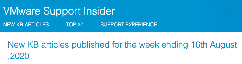 New KB articles published for the week ending 16th August, 2020New KB articles published for the week ending...Check out the new KB articles published for the week ending 16th August, 2020 from VMware Support Insider.VMware Social Media Advocacy