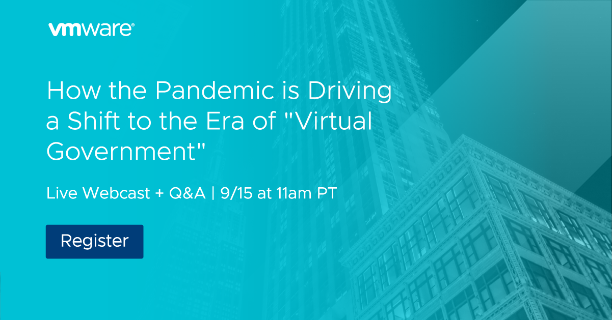 LIVE Webcast + Q&A: The New Era of "Virtual Government"LIVE Webcast + Q&A: The New Era of "Virtual...Digital-first initiatives are moving faster than ever before. Don't miss this LIVE webcast + Q&A as VMware SLED Strategist, Herb Thompson, examines this new era of "virtual government."VMware Social Media Advocacy