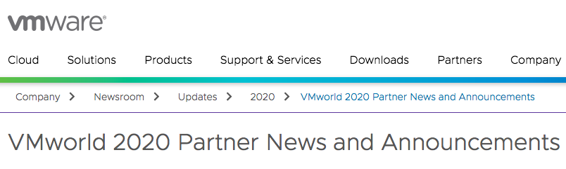 Company Newsroom Updates: 2020 VMworld, 2020 Partner News, and Announcements.