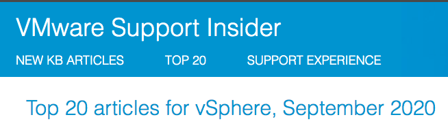 Check out the Top 20 articles for vSphere, September 2020 – from VMware Support Insider.