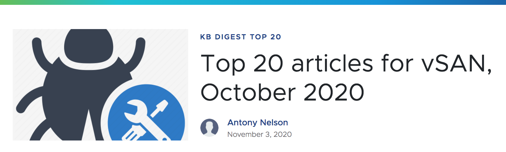 Check out the Top 20 articles for vSAN, October 2020 – from VMware Support Insider.
