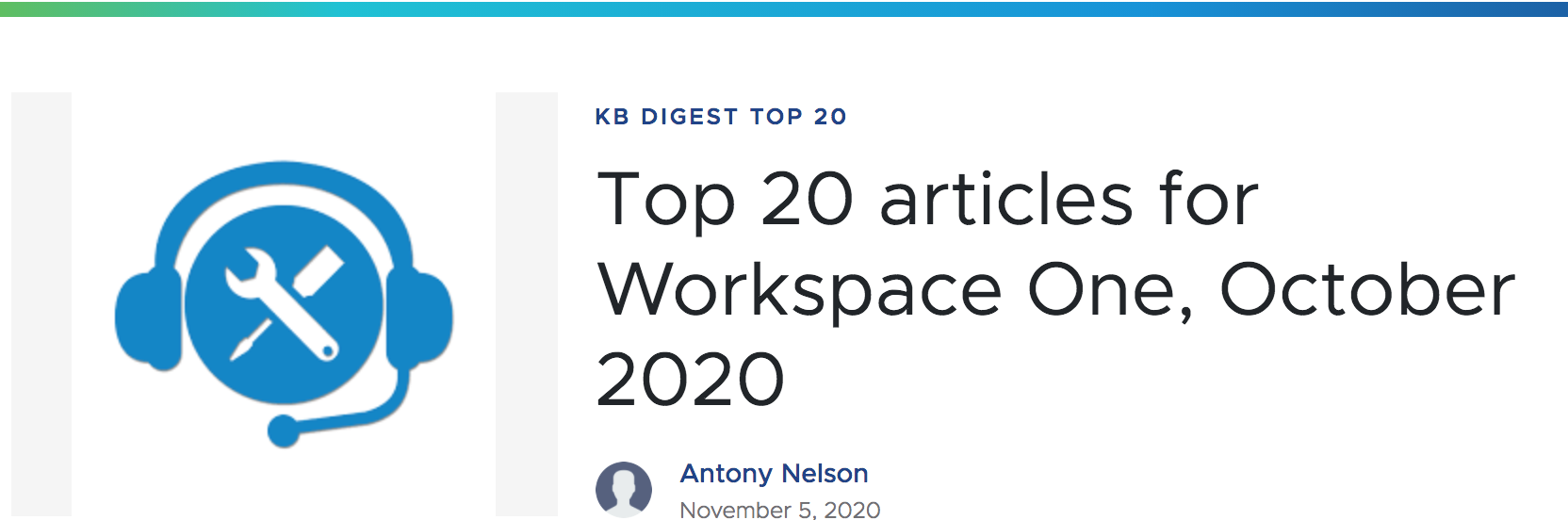 Check out the Top 20 articles for Workspace One, October 2020 – from VMware Support Insider.