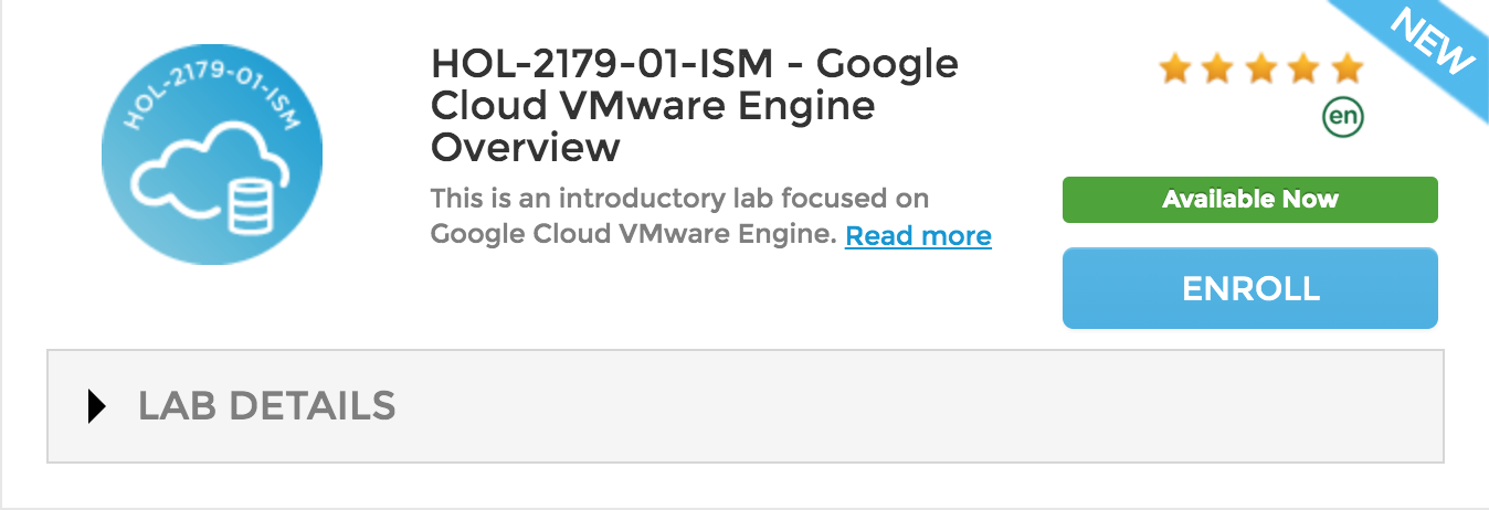 Google Cloud VMware Engine (#GCVE) Hands-On Lab is now available from VMware Hands-On Labs.