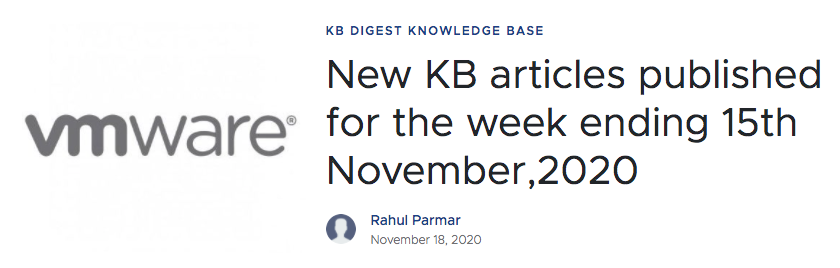 Check out the New KB articles published for the week ending 15th November, 2020 – from VMware Support Insider.