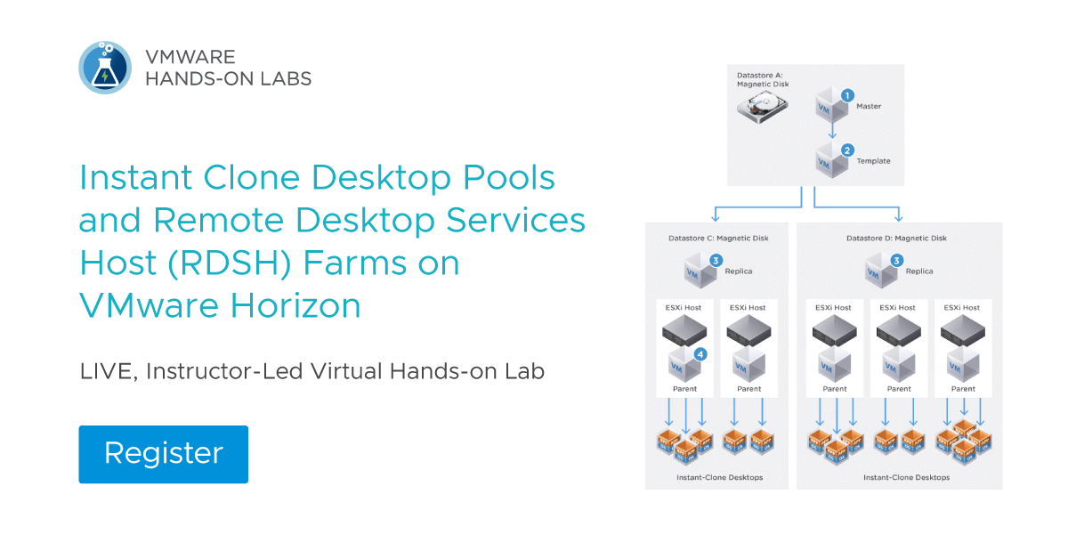 Register to learn more about Instant Clone desktop pools and remote desktop services host (RDSH) farms in VMware Horizon!