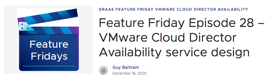 Feature Friday Episode 28 – VMware Cloud Director Availability service design