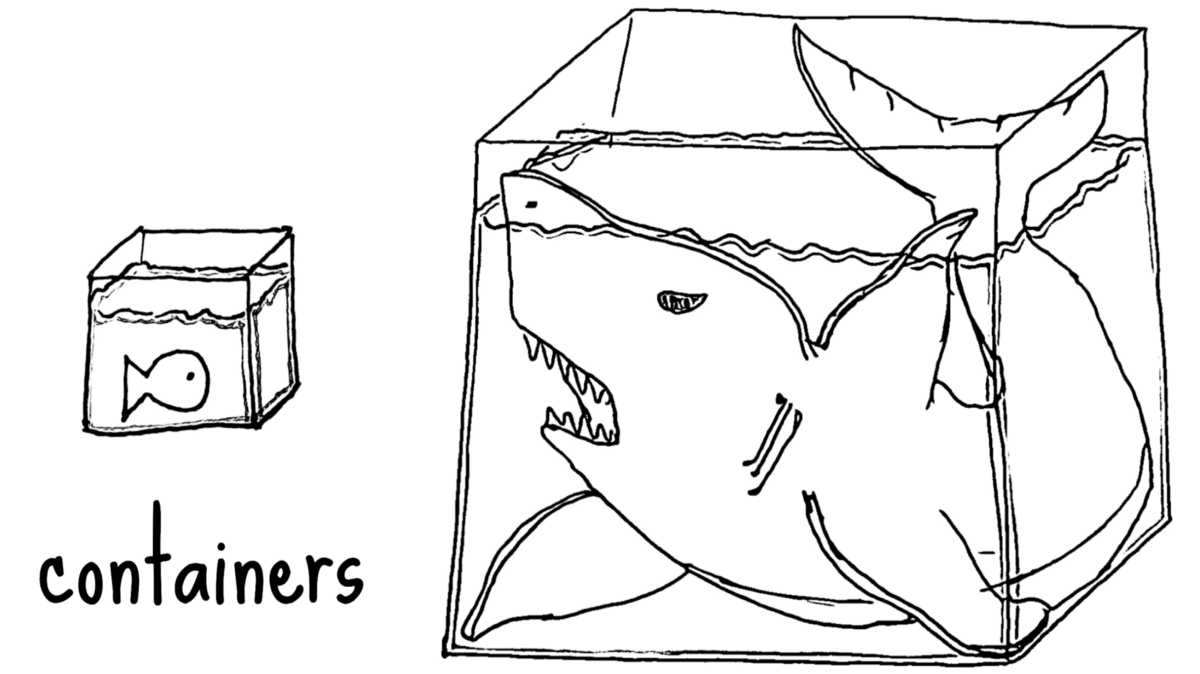 A tour through the containers of fishes and sharks, and the way that the Kubernetes aquarium orchestrates them.