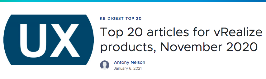 Check out the Top 20 articles for vRealize products, November 2020, from VMware Support Insider.