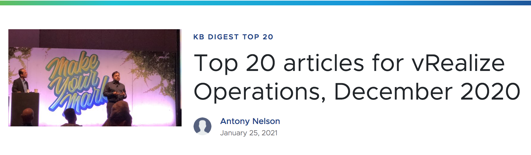 Check out the top 20 articles for vRealize Operations, December 2020 – from VMware Support Insider.