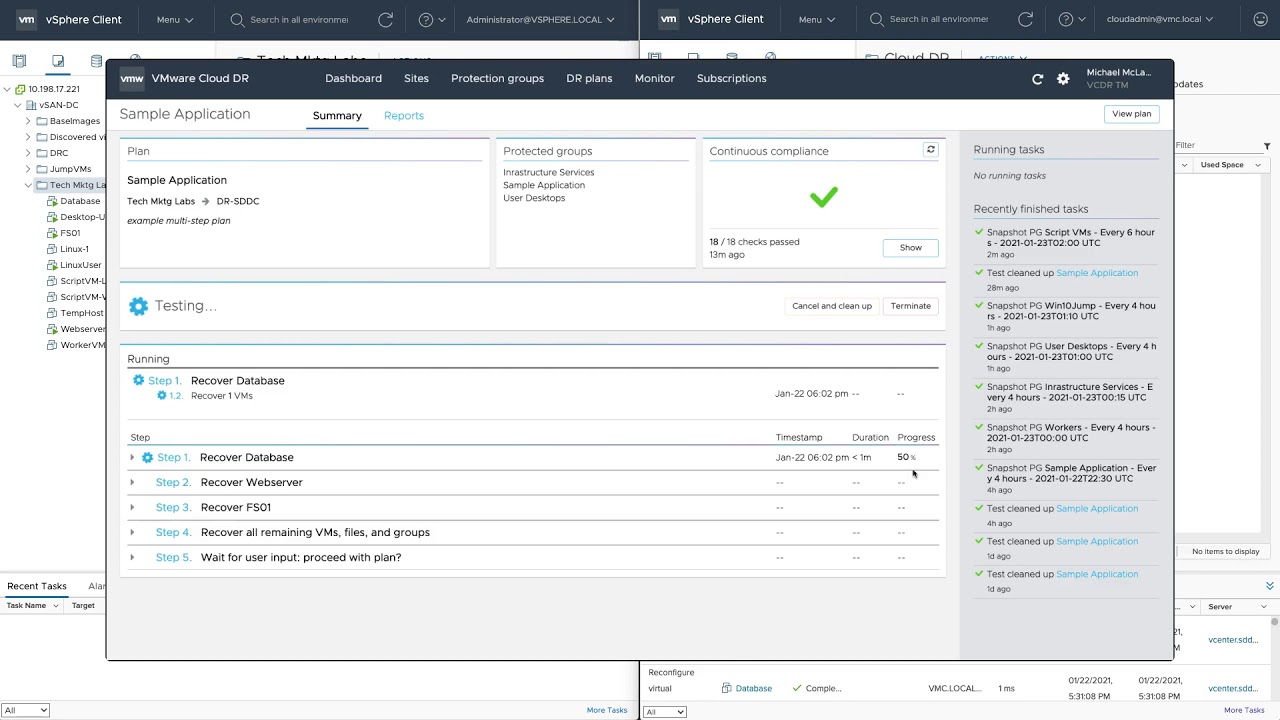 Test DRaaS workflows using VMware Cloud on AWS at anytime without disruption.