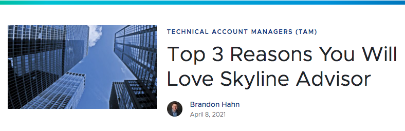 Top 3 Reasons You Will Love Skyline AdvisorTop 3 Reasons You Will Love Skyline AdvisorThis is part one of a two-part series focusing on Skyline support capabilities.VMware Social Media Advocacy
