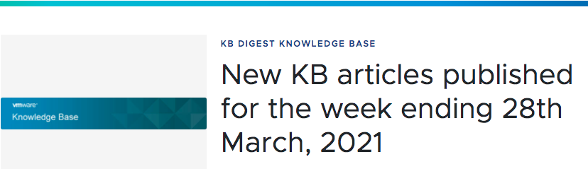 New KB articles published for the week ending 28th March, 2021New KB articles published for the week ending...Check out the New KB articles published for the week ending 28th March, 2021 - from VMware Support Insider.VMware Social Media Advocacy